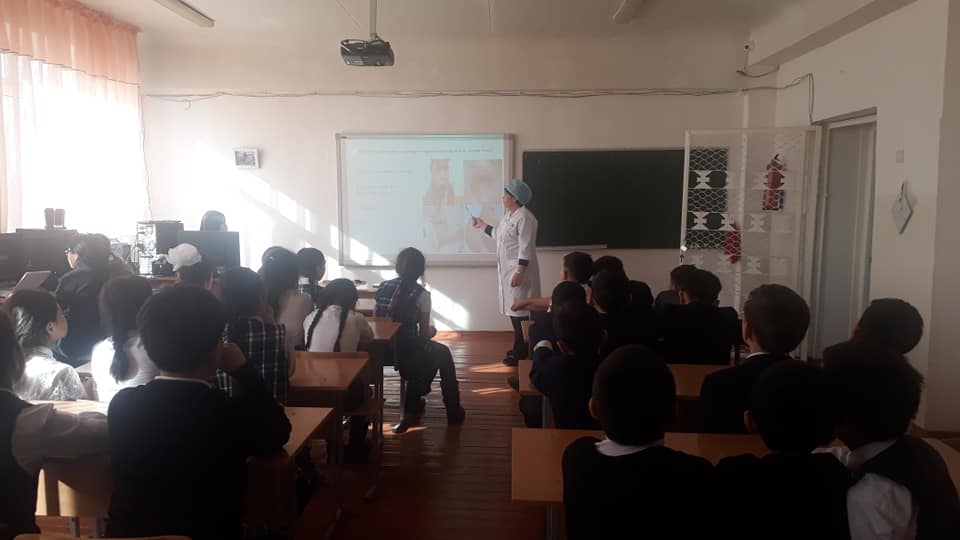 13 февраль 2020 0 1 2 3 4 5 "Жұқпалы тері аураулары мен педикулездің алдын алу" акциясы "Жұқпалы тері аураулары мен педикулездің алдын алу" акциясы аясында мектеп медбикесі А.Кушукова 5-11 сынып оқушыларына презентация көрсетіп, түсіндіру жұмыстарын жүргізді.