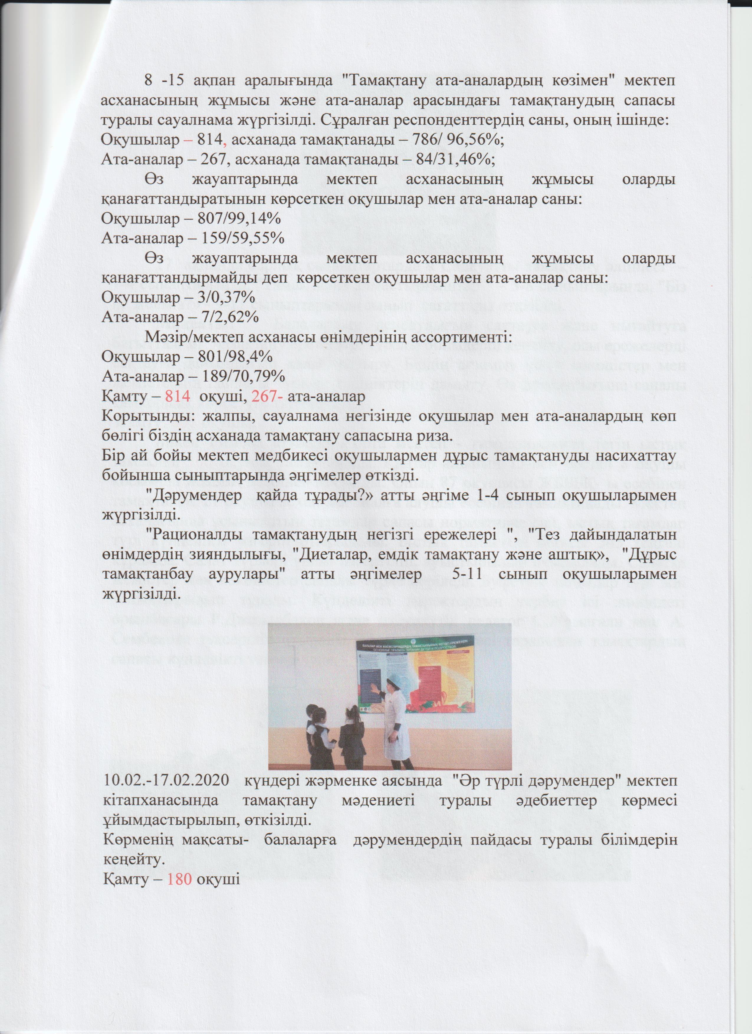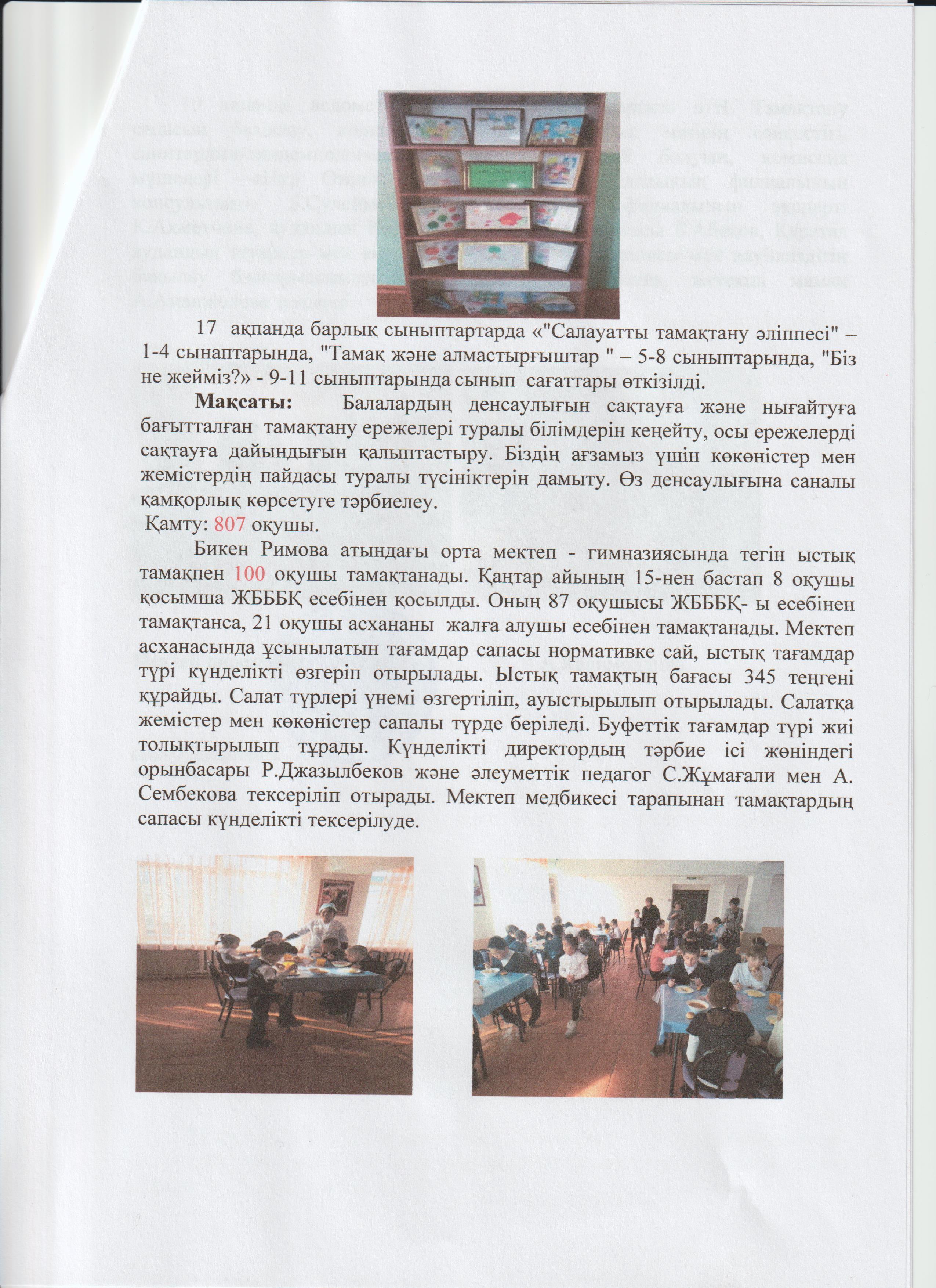 «Бикен Римова атындағы МДШО бар орта мектеп-гимназиясы» КММ-і бойынша27 қантар мен 27 ақпан аралығында «Мектеп асханасы» республикалық акциясының өтілуі туралы ақпарат » Б.Римова атындағы орта мектеп-гимназия